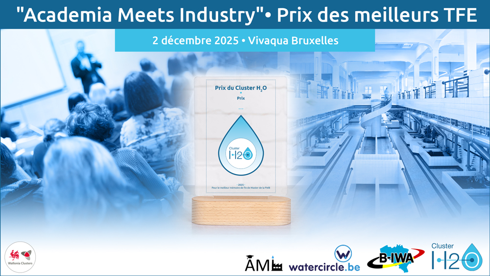Comme l'an dernier, le Cluster H2O remettra plusieurs prix pour les meilleurs mémoires de fin d'études défendus en 2025 portant sur des thématiques technologiques liées à la gestion de l'eau.