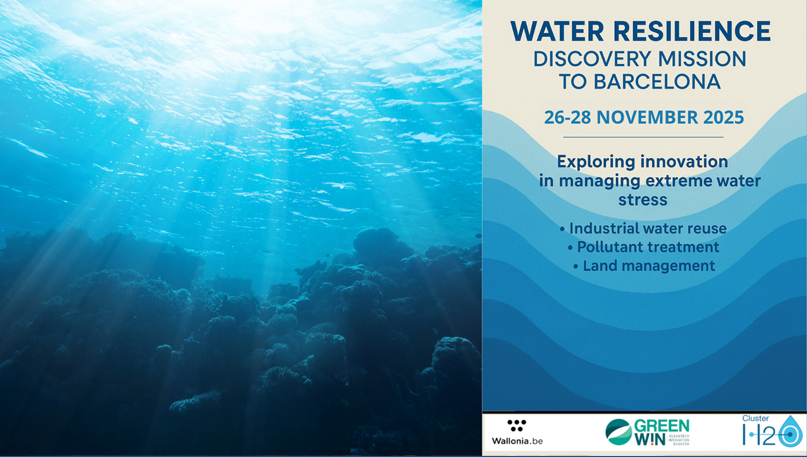 GreenWin et le Cluster H2O, en collaboration avec l’IIS H2O, le District Cleantech, WBI et l’AWEX, ont le plaisir d’annoncer l’organisation d’une mission découverte & innovation à Barcelone, consacrée au thème de la résilience hydrique.